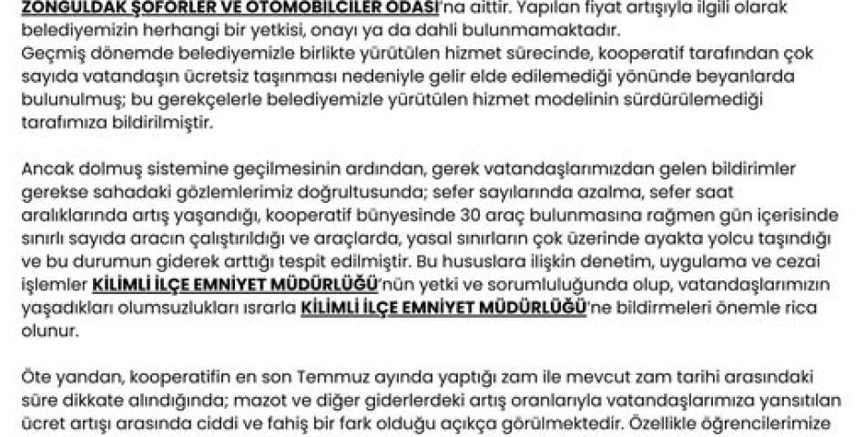 Fen İşleri Müdürlüğümüz tarafından yürütülecek yol çalışmaları nedeniyle, 26–27 Ocak tarihlerinde Belediye Sitesi Mahallesi 100. Yıl Sokak araç trafiğine kapalı olacaktır. Çalışmaların aksamaması için belirtilen alana araç park edilmemesi, park hâlinde bulunan araçların araç sahiplerince kaldırılması önemle duyurulur. Vatandaşlarımızın mağduriyet yaşamamaları adına alternatif güzergâhları kullanmaları rica olunur.