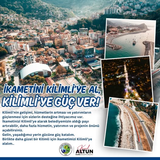 Kilimlimizin daha güçlü hizmetlere, daha fazla yatırıma ve daha güzel yarınlara ulaşması için sen de katkı sağlayabilirsin. İkametini Kilimli’ye alarak ilçemizin aldığı payı artırabilir, projelerin ve hizmetlerin çoğalmasına destek olabilirsin.