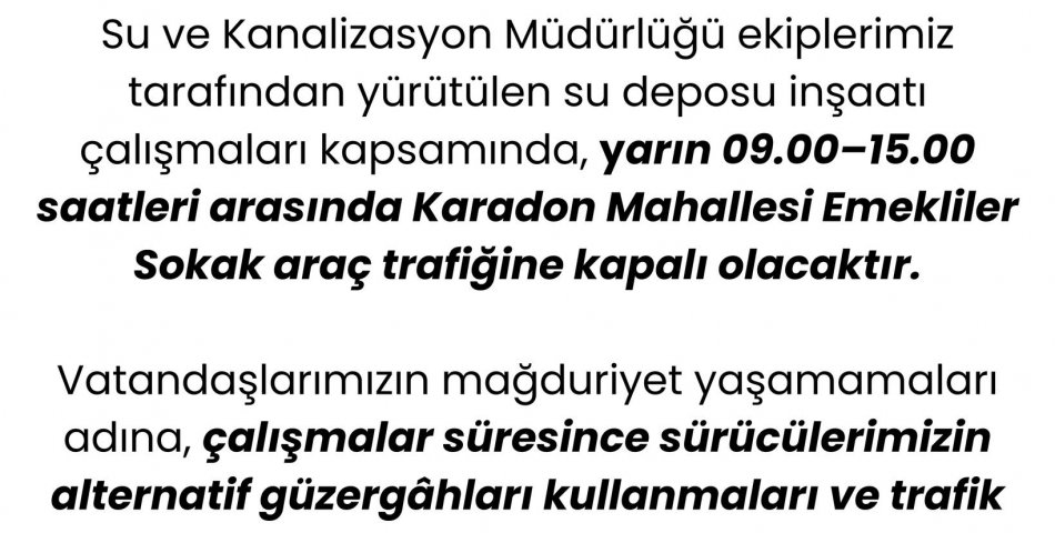 Vatandaşlarımızın dikkatine-Kapalı yol bilgilendirme